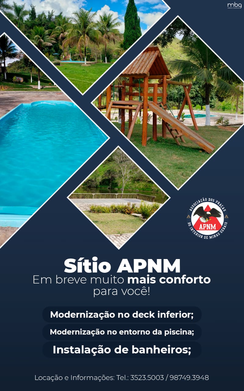 A Associação dos Praças do Interior de Minas Gerais por meio da sua diretoria comunica que o Sítio da APNM está em pleno funcionamento para locação.